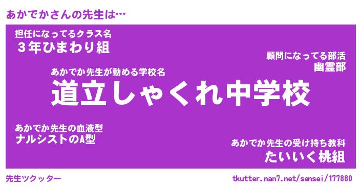 | 意味不明あだ名 | 『ペロリンあかでか』『永久保存あかでか』 |