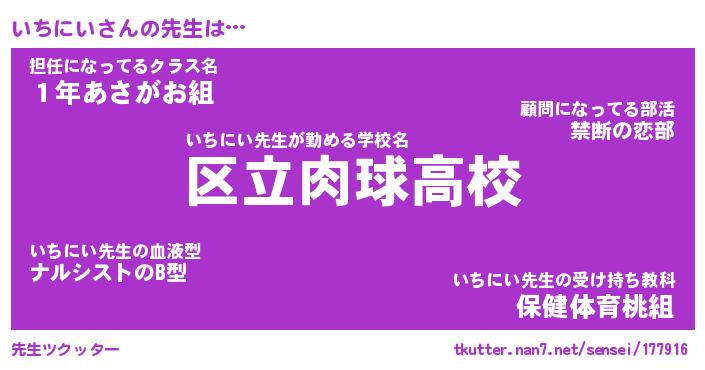 | 意味不明あだ名 | 『ペロリンいちにい』『永久保存いちにい』 |