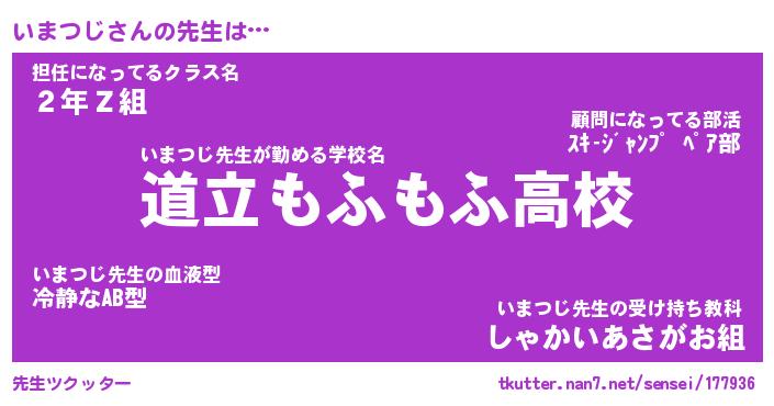 | ポケモン風あだ名 | 『イマチュウ』『イマツダネ』 |