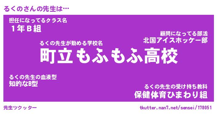 | ヘコむあだ名 | 『るくにゅー』『牛乳』『るくぷりん』 |