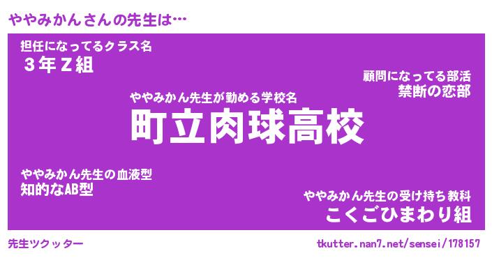 | ファンタジー風あだ名 | 『ヤヤフェル』『エターナルヤヤミカンー』 |