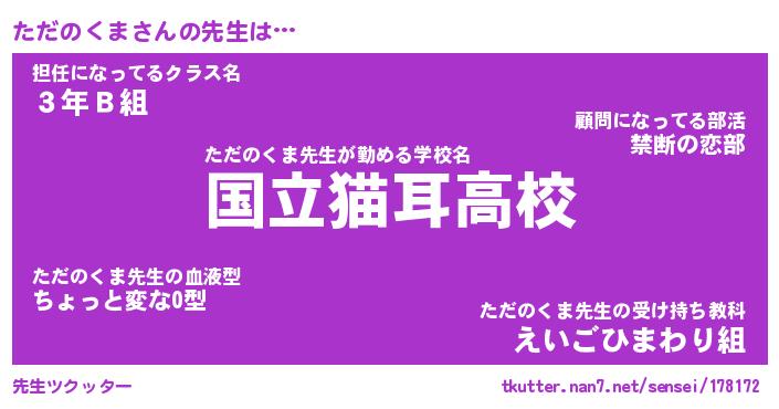 | ファンタジー風あだ名 | 『タダフェル』『エターナルタダノクマー』 |