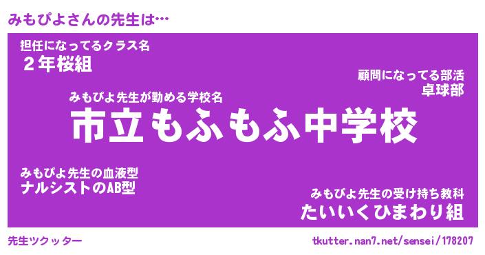 | ヘコむあだ名 | 『みもにゅー』『つくし』『みも太郎』 |