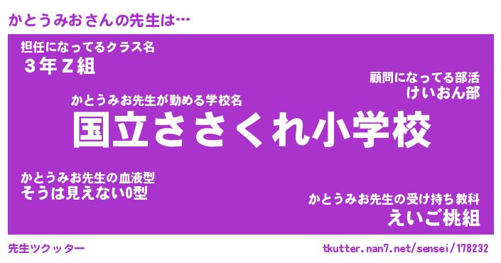 | 意味不明あだ名 | 『ペロリンかとうみお』 |