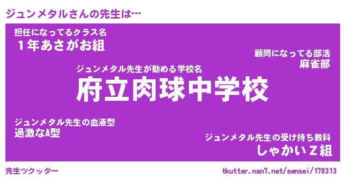 | ヒーロー風カッコイイあだ名 | 『スーパージュンメタル』『銀牙騎士ジュ』 |
