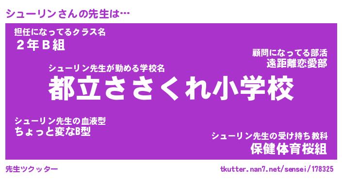 | ファンタジー風あだ名 | 『シュフェル』『エターナルシューリンー』 |