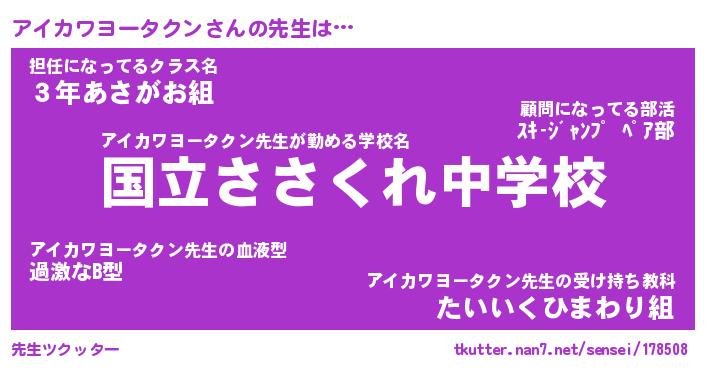 | 伝説のあだ名 | 『伝説のスナイパーアイカワヨータクン』 |
