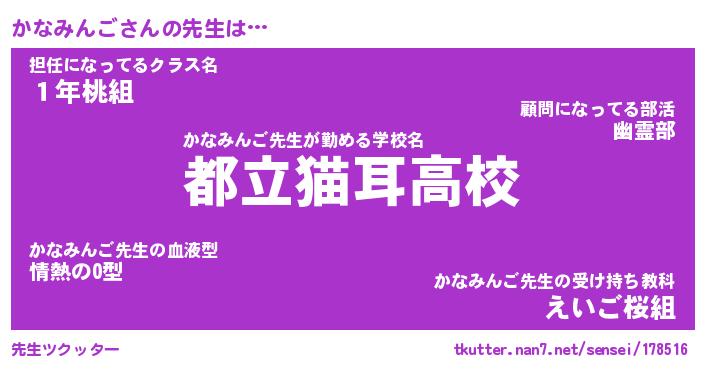 | ヒーロー風カッコイイあだ名 | 『スーパーカナミンゴ』『暗黒騎士カナ』 |