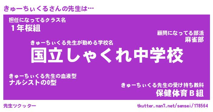 | ヘコむあだ名 | 『きゅっふぃ~』『つくし』『きゅを』 |