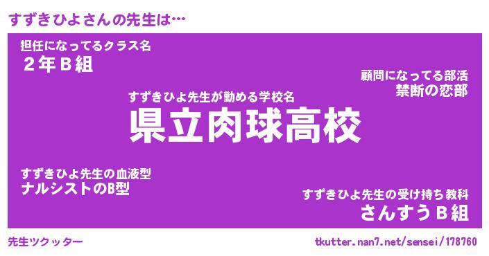 | ファンタジー風あだ名 | 『スズフェル』『エターナルスズキヒヨー』 |