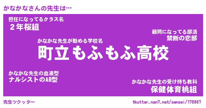 | ヘコむあだ名 | 『かなにゅー』『なまこ酢』 |