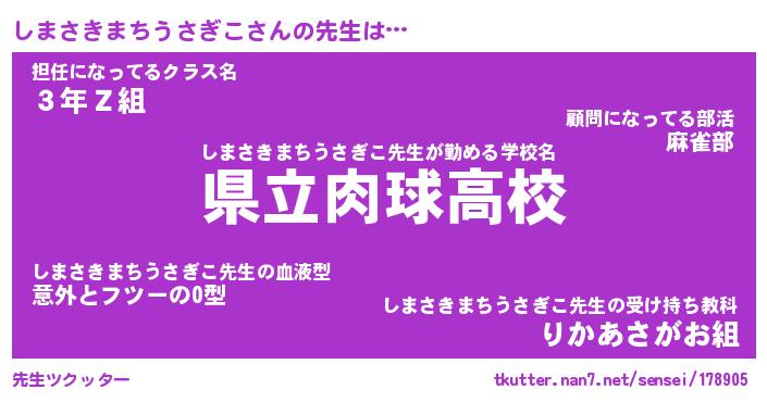 | 意味不明あだ名 | 『ペロリンしまさきまちうさぎこ』 |
