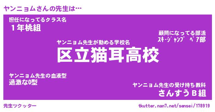 | ポケモン風あだ名 | 『ヤンチュウ』『ヤンニダネ』 |