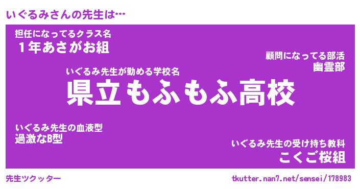 | 意味不明あだ名 | 『ペロリンいぐるみ』『永久保存いぐるみ』 |
