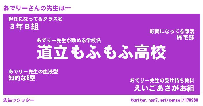 | 意味不明あだ名 | 『ペロリンあでりー』『永久保存あでりー』 |