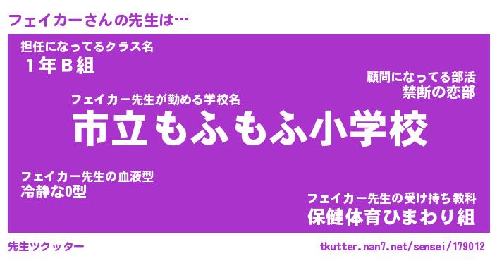| ファンタジー風あだ名 | 『フェフェル』『エターナルフェイカーー』 |