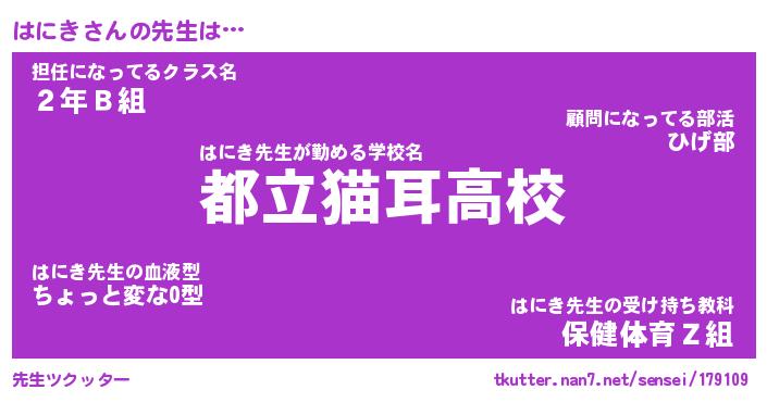 | ヘコむあだ名 | 『はににー』『つくし』『はにっ子』 |