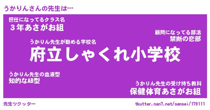 | 意味不明あだ名 | 『ペロリンうかりん』『永久保存うかりん』 |