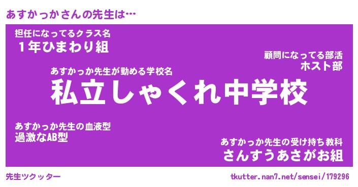 | ヘコむあだ名 | 『あすっふぃ~』『つくし』『あすを』 |