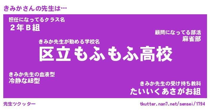 | ヘコむあだ名 | 『きみにゅー』『なまこ酢』 |