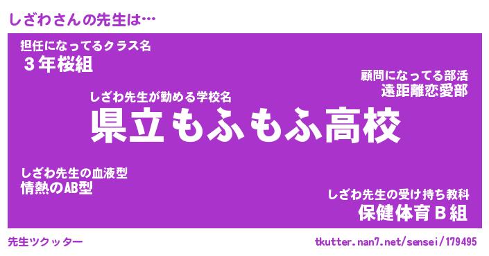 | ヘコむあだ名 | 『しざにゅー』『なまこ酢』 |