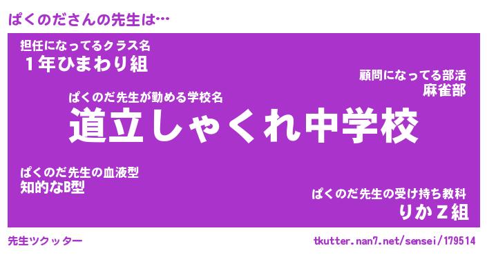 | 意味不明あだ名 | 『ペロリンぱくのだ』『永久保存ぱくのだ』 |