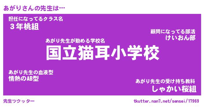 | 意味不明あだ名 | 『ペロリンあがり』『あがりフォーエバー』 |