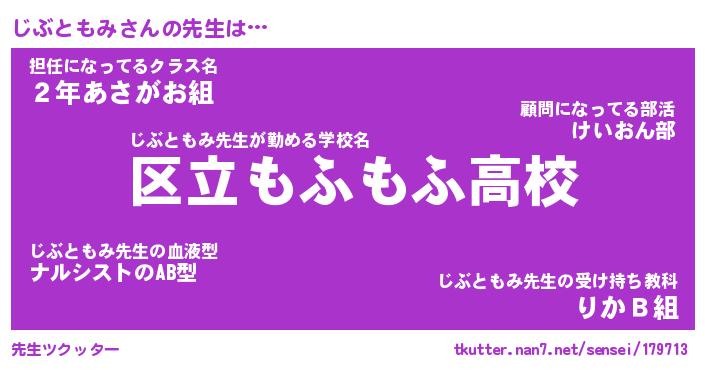 | ヘコむあだ名 | 『じぶにゅー』『なまこ酢』『じぶお』 |