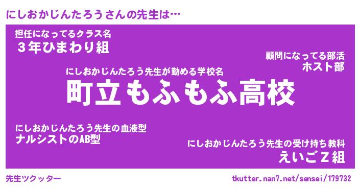 | ポケモン風あだ名 | 『ニシチュウ』『ニシオダネ』 |
