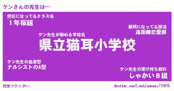 | ポケモン風あだ名 | 『ケンチュウ』『ケンダネ』『ヒケン』 |