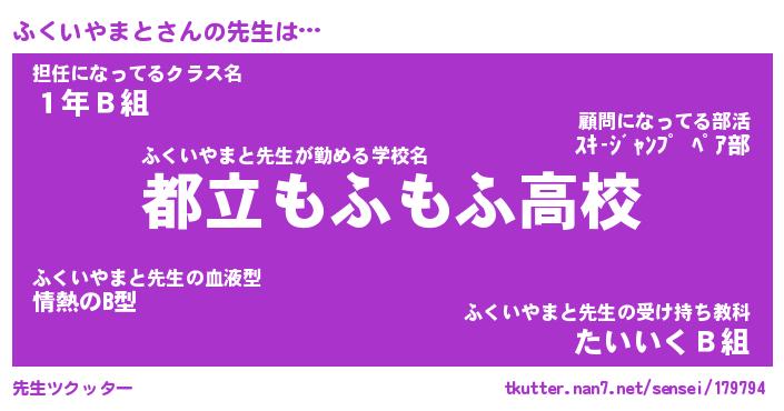 | ヘコむあだ名 | 『ふくにゅー』『豆乳』『ふく太郎』 |