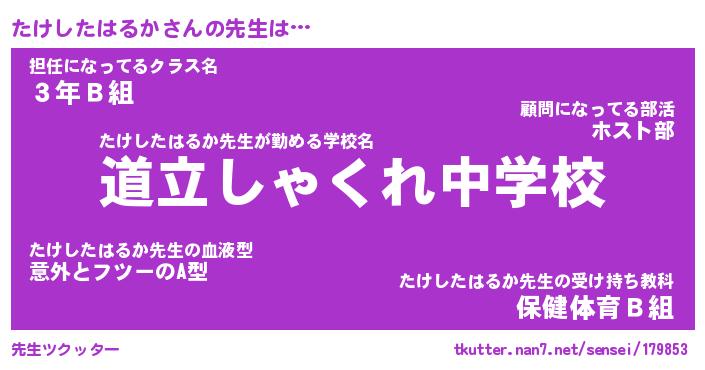 | 肩書あだ名 | 『たけしたはるか御曹司』 |