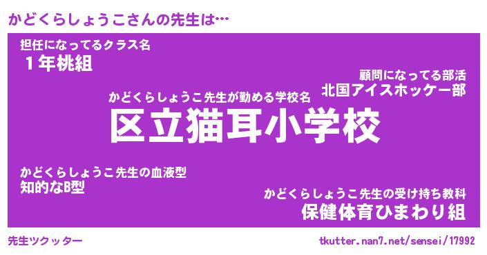 | ツイッター | かどくらしょうこさんのツイッターID『fukuyoka_man』 |