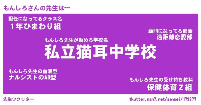 | 意味不明あだ名 | 『ペロリンもんしろ』『永久保存もんしろ』 |