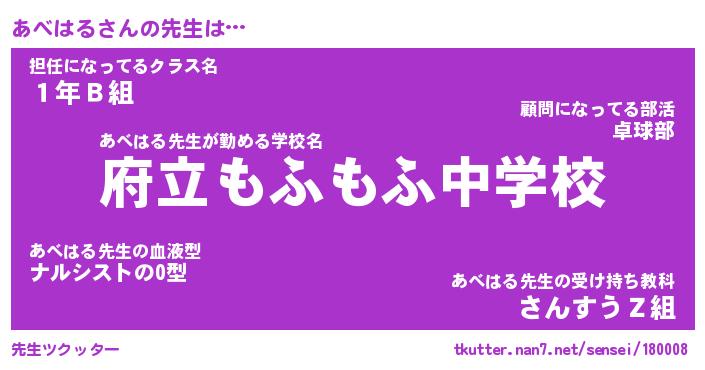 | 意味不明あだ名 | 『ペロリンあべはる』『永久保存あべはる』 |
