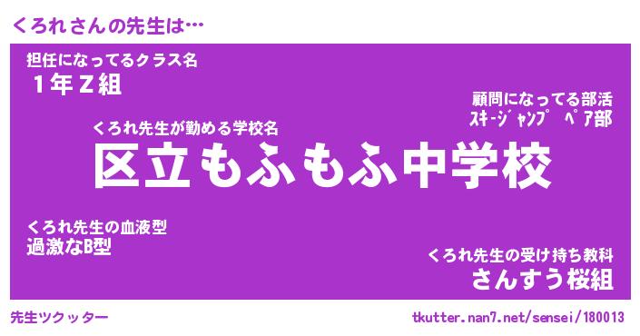 | ヘコむあだ名 | 『くろにゅー』『牛乳』『くろっちょ』 |