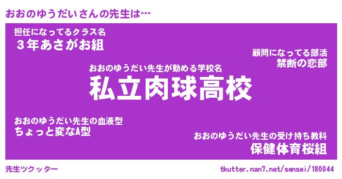 | 胡散臭い通販商品みたいなあだ名 | 『必ず成功するブレスレット…その名も「おおのゆうだい」』 |