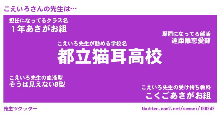 | ファンタジー風あだ名 | 『コエフェル』『エターナルコエイロー』 |