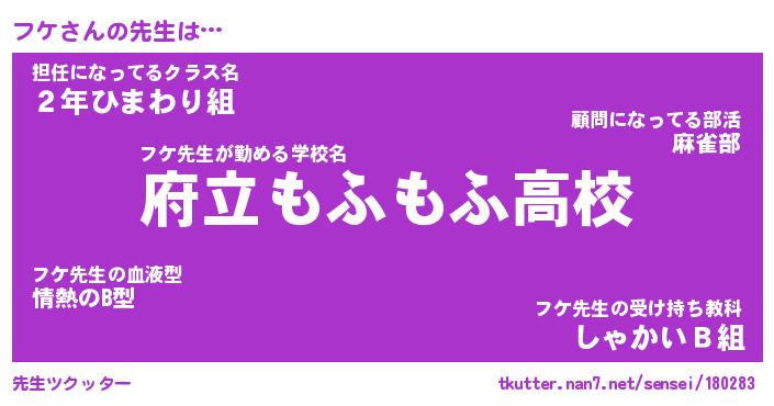 | ヘコむあだ名 | 『フケにゅー』『豆乳』『フケ太郎』 |