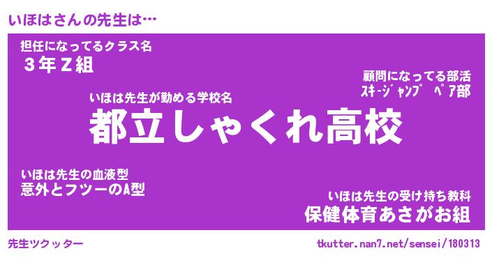 | ポケモン風あだ名 | 『イホチュウ』『イホハダネ』 |