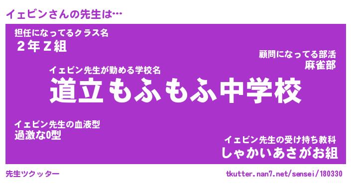 | ファンタジー風あだ名 | 『イェフェル』『エターナルイェビンー』 |