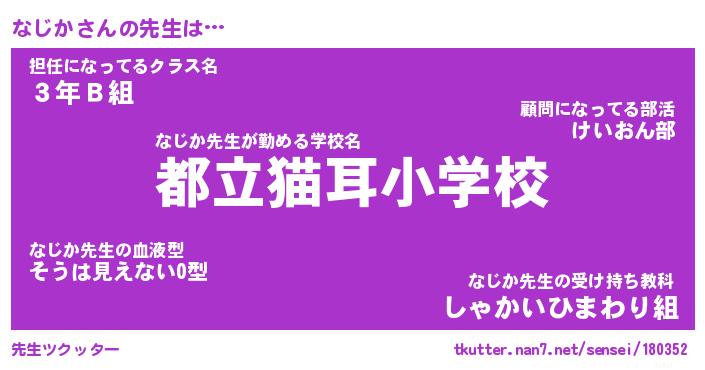 | 意味不明あだ名 | 『ペロリンなじか』『なじかフォーエバー』 |