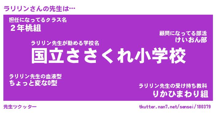 | 意味不明あだ名 | 『ペロリンラリリン』『永久保存ラリリン』 |