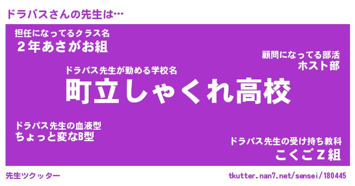 | 意味不明あだ名 | 『ペロリンドラパス』『永久保存ドラパス』 |