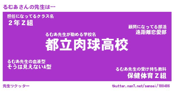 | ヘコむあだ名 | 『るむふぇ~』『なまこ酢』『るむを』 |