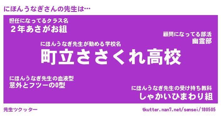 | ヒーロー風カッコイイあだ名 | 『スーパーニホンウナギ』『暗黒騎士ニホ』 |