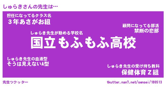 | 意味不明あだ名 | 『ペロリンしゅらき』『永久保存しゅらき』 |