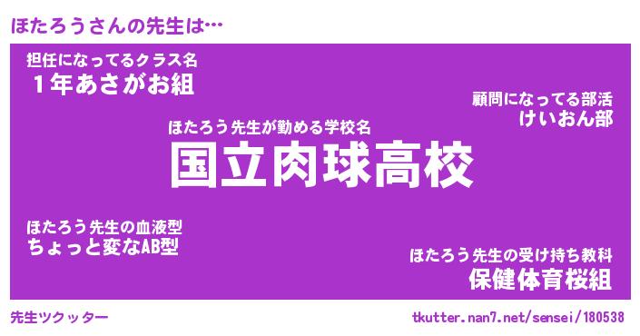 | 意味不明あだ名 | 『ペロリンほたろう』『永久保存ほたろう』 |
