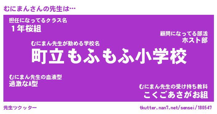 | 意味不明あだ名 | 『ペロリンむにまん』『永久保存むにまん』 |
