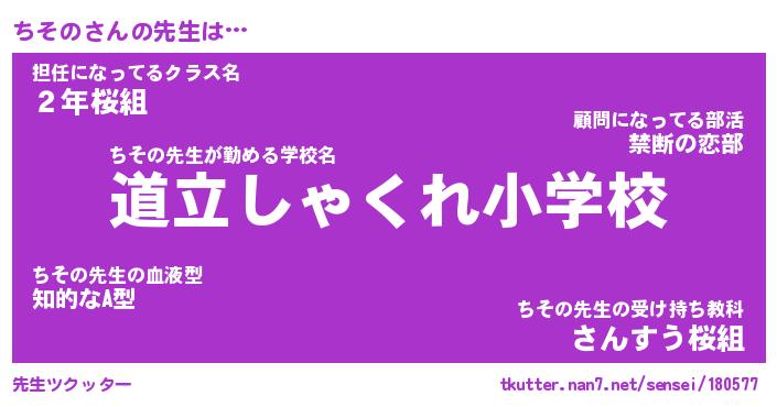 | ヒーロー風カッコイイあだ名 | 『スーパーチソノ』『ウルトラちそのマン』 |